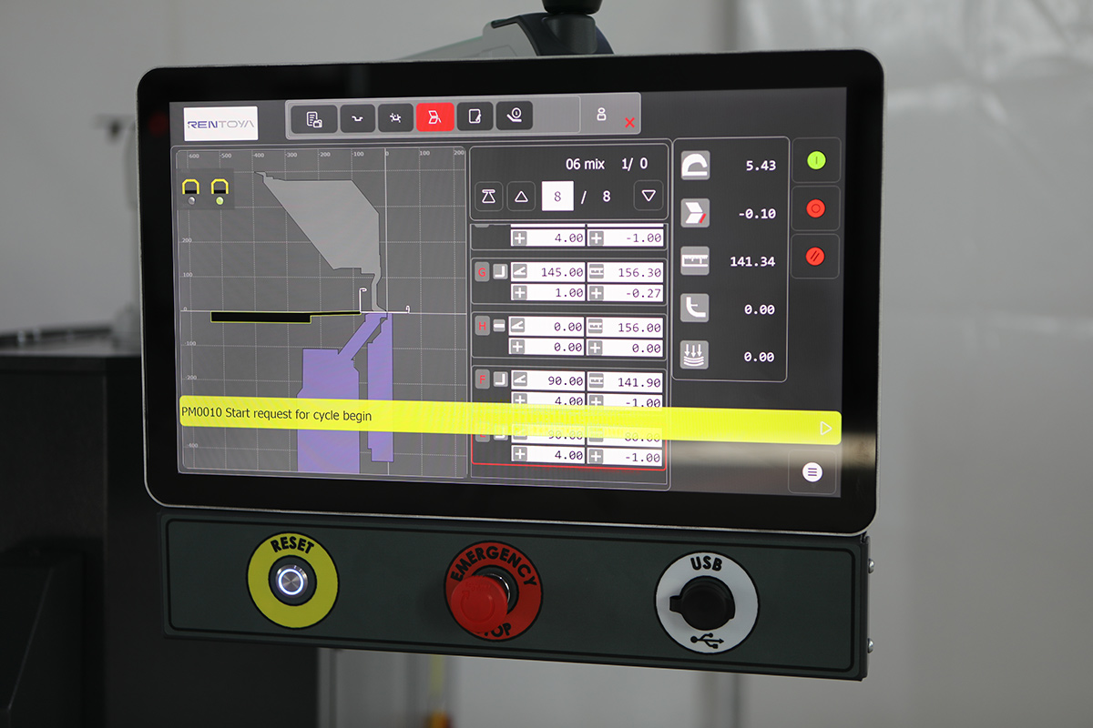 Sabit döner kol üzerinde cnc satır satır yazılıma sahip 15,6’’ dokunmatik ekranlı kontrol cihazı.